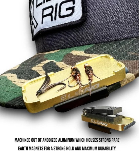 The Stash Tray is a revolutionary new way to hold and store your Lid Rig, favorite flies, tools, and more right on the brim of your hat for quick access.