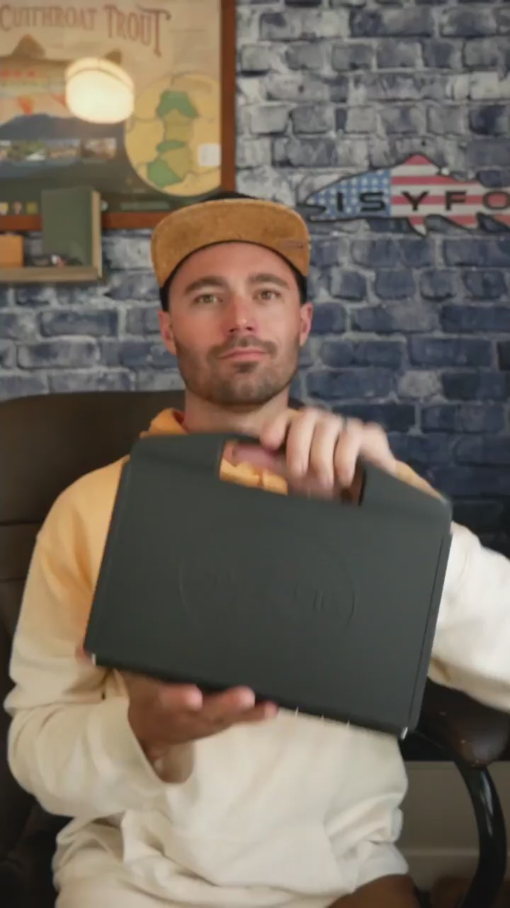 The innovative Mag Box Pro is our take on a streamer box. It features magnetic inserts on both sides and comes with 3 large fly docks + a magnetic tin box. Move and replace the docking stations to accommodate your fishing for the day.