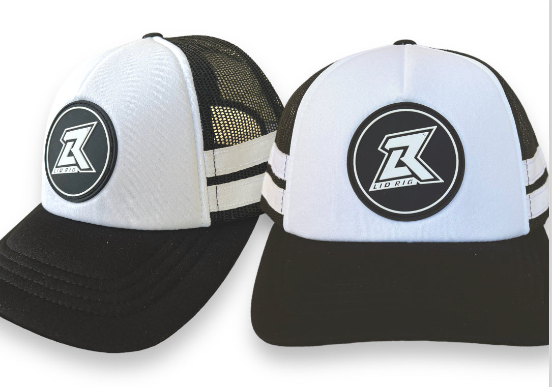 A Low Profile Foam Front, Striped Mesh Back, PVC Patch, Trucker Hat with a Curved Bill, & Classic Snapback.